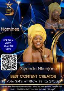 As an official nominee of the Emerge Africa Awards, Ziyanda’s voting details are shared below for readers who wish to support her through public voting.